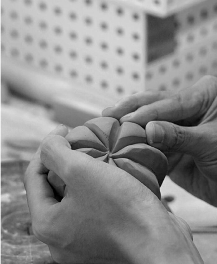ぷっくりとしたハリのあるフォルムになるよう一つ一つ手とヘラを使って成形しています。