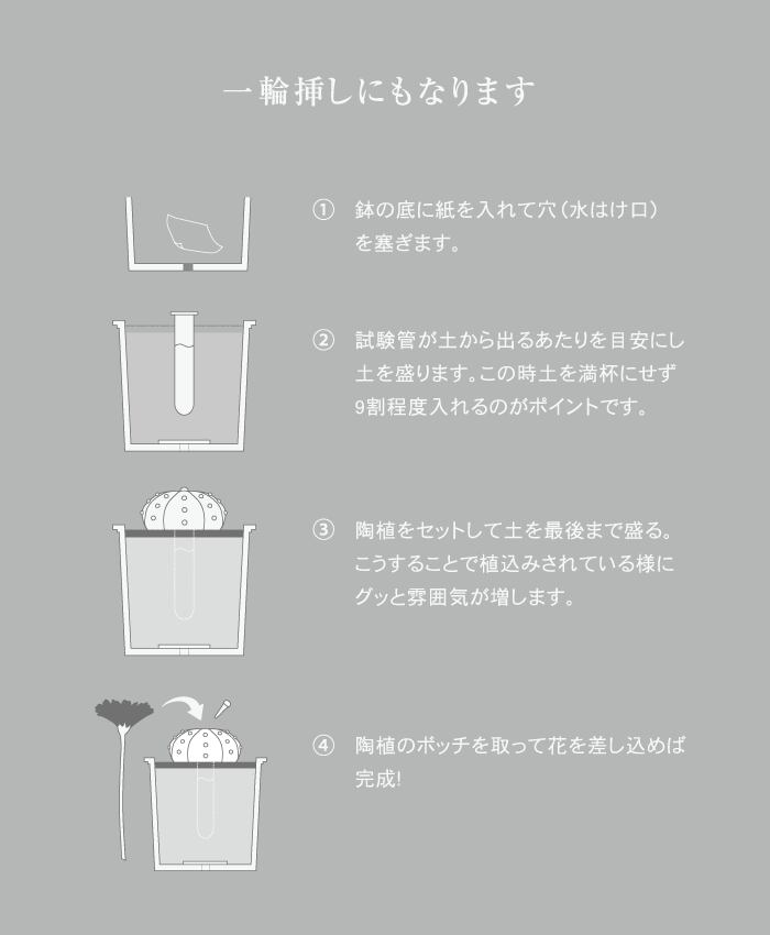 鉢にセットする際など砂の中に試験管をかくして上からカバーのように被せてご使用ください。