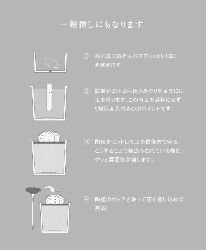 鉢にセットする際など砂の中に試験管をかくして上からカバーのように被せてご使用ください。