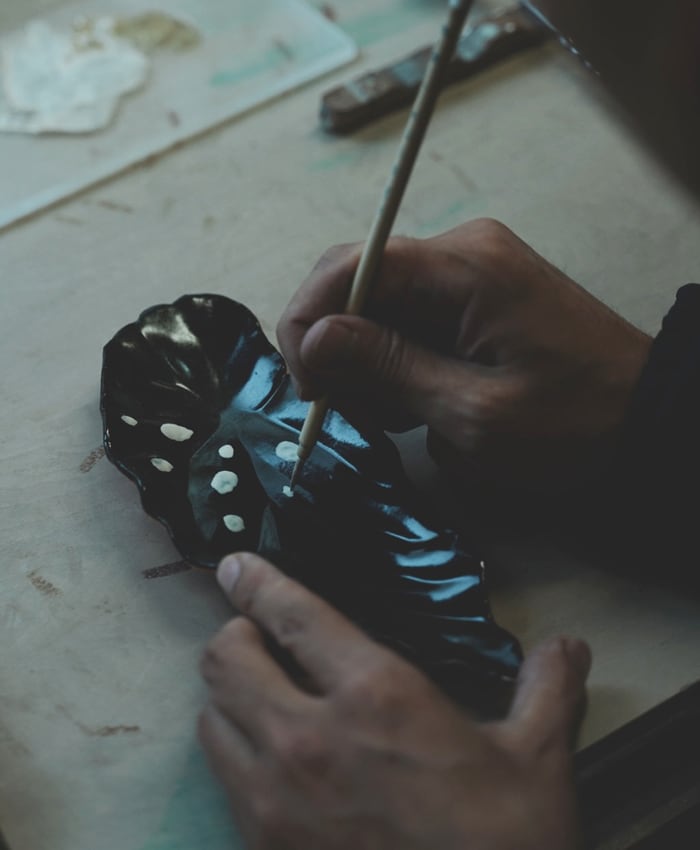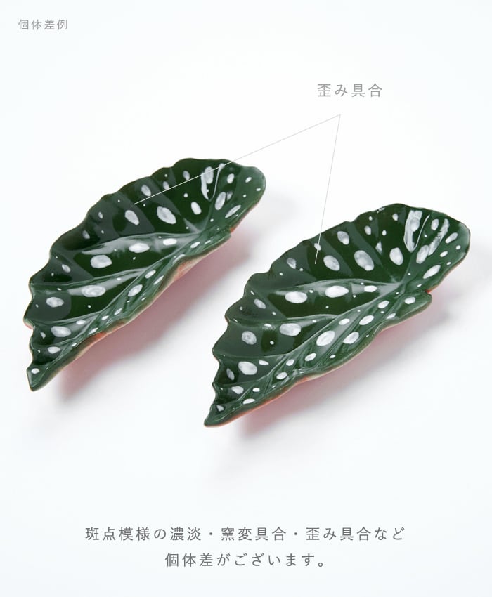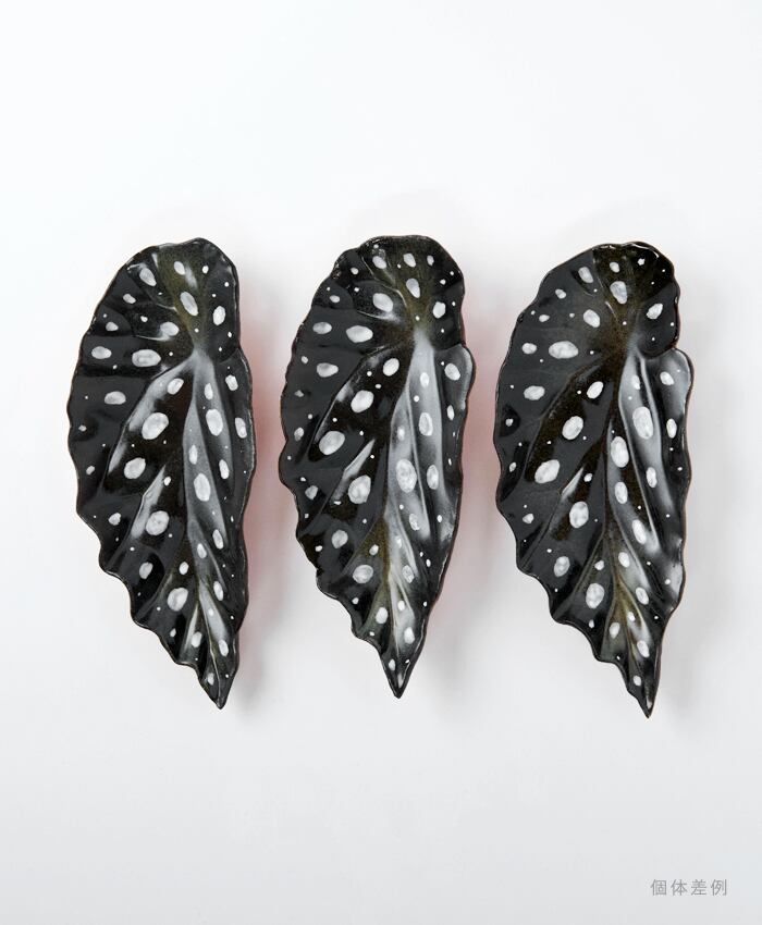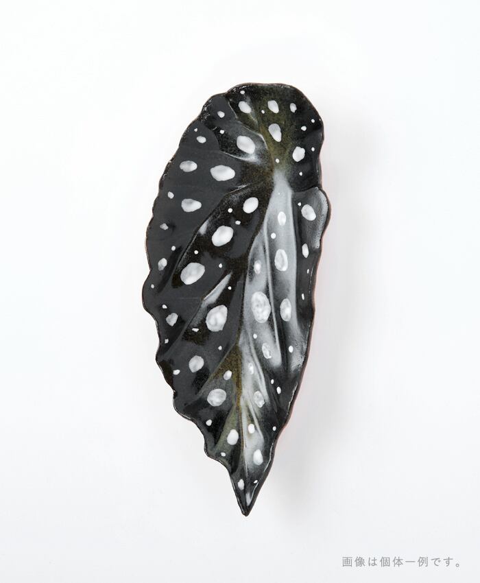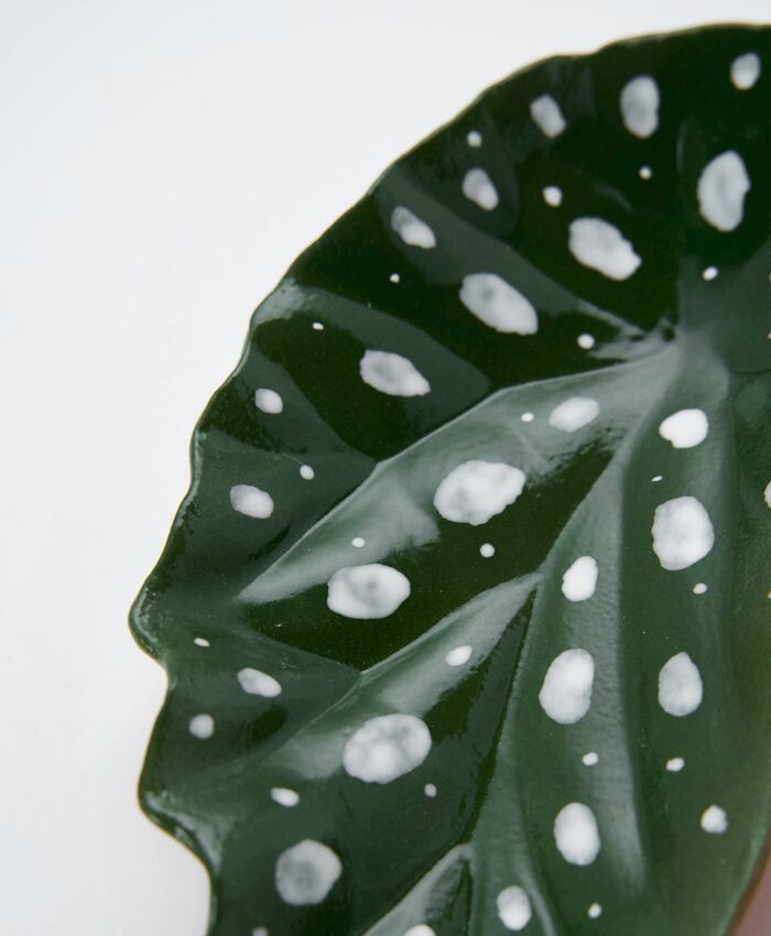 ベゴニアマクラータの葉をモチーフにした小皿です。カラーは黒ベースと緑ベースの2種類となります。