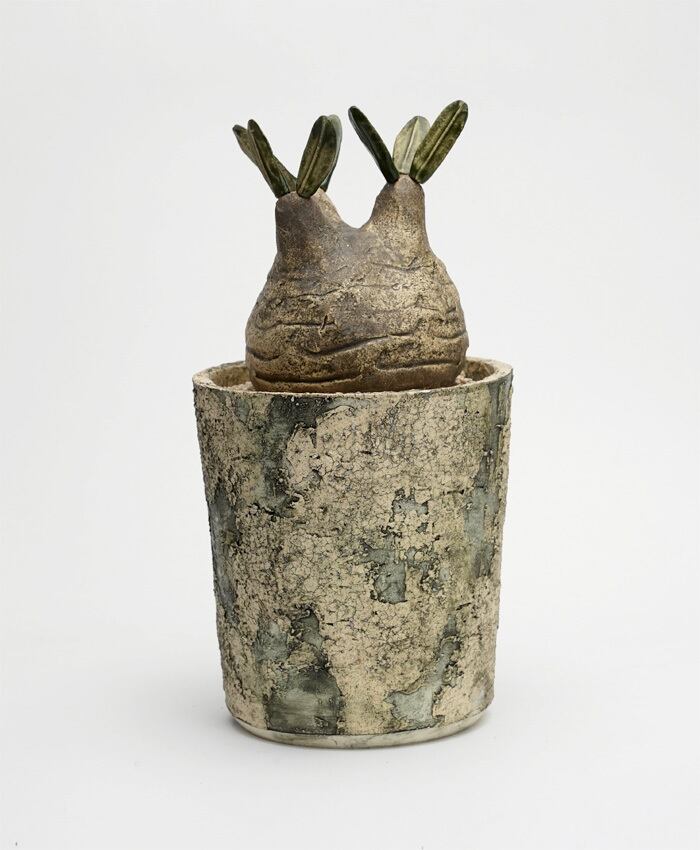 細かい土と粗い土をランダムになるよう成形した鉢です。